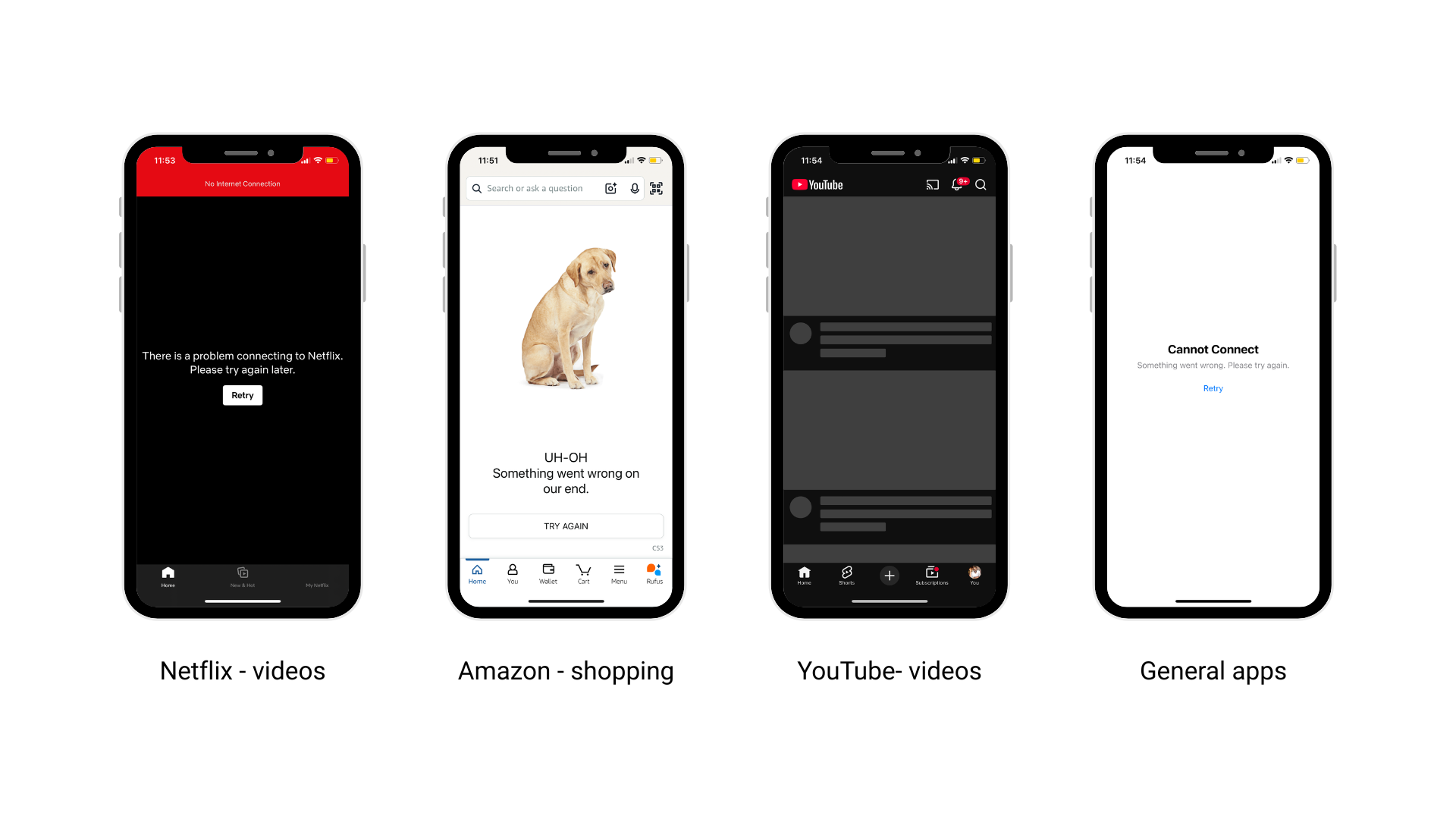 - App indicating an error that there is no internet